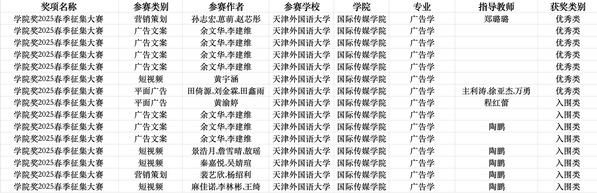 近日,2025春季中国大学生广告艺术节学院奖征集大赛与2025“沂蒙山杯”公益微电影创作大赛先后结束。天外国际传媒学院广告学专业师生积极参与,在两个全国性赛事中取得了不错的成绩,展示了学校在实践教学方面的努力与进展。中国大学生广告艺术节学院奖由中国广告协会主办,是国内面向大学生的广告传播与设计类专业赛事,具有较高的专业参与度。在2025春季比赛中,我校国际传媒学院广告学专业学生提交的作品获得了肯定,共有15组作品获奖,其中获得优秀奖7组,入围奖8组。同时,在2025“沂蒙山杯”公益微电影创作大赛中(该赛事是为纪念中国人民抗日战争暨世界反法西斯战争胜利80周年而举办的全国性活动),我校师生也积极
