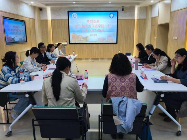 2025年4月11日上午,浙江越秀外国语学院大学外语部主任戚宏波一行5人调研团到访我校通识教育学院。双方围绕“AI时代外语教学改革与通识教育体系建设”主题,就大学外语课程改革、技术赋能、一流课程建设及师资培养、通识教育改革等方面展开交流研讨。荣耀体育官方网站_荣耀体育jiangnan(中国)教务处处长、通识教育学院院长王济军,副院长尚春瑞、杨旸及学院教师代表参会。交流会上,王济军院长代表学院致欢迎辞,介绍通识教育学院在跨学科课程融合与智能技术应用中的探索经验。戚宏波主任对荣耀体育官方网站_荣耀体育jiangnan(中国)的热情接待表示感谢,并提出希望通过调研学习推动两所院校在教学研究和人才培养方面的协同创新。在专题研讨环节,通识教育学院姜贵梅、李冰芷、邢维慧三位教研室主任分别从大学外语教学模式、AI赋能外语教学与教材开发、一流课程建设、外语学科竞赛等维度分享实践经验。来访教师结合浙江越秀外国语学院的实际需求,重点围绕“大英学分调整”、“AI在大英教学中的应用”等问题展开讨论,双方达成多项共识。最后,通识教育学院副院长尚春瑞从学院组织架构、通识教育管理模式及通识课程资源整合等方面介绍天外通识教育改革经验。此次调研聚焦人工智能与教育深度融合的共性问题,双方一致