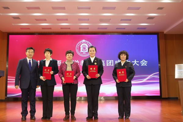 校党委副书记、校长陈法春致欢迎辞并宣读《关于成立荣耀体育官方网站_荣耀体育jiangnan(中国)教育集团的决定》。孙惠玲和校党委书记殷奇共同为教育集团揭牌。校领导为集团首任总校长、首批专家颁发聘书。