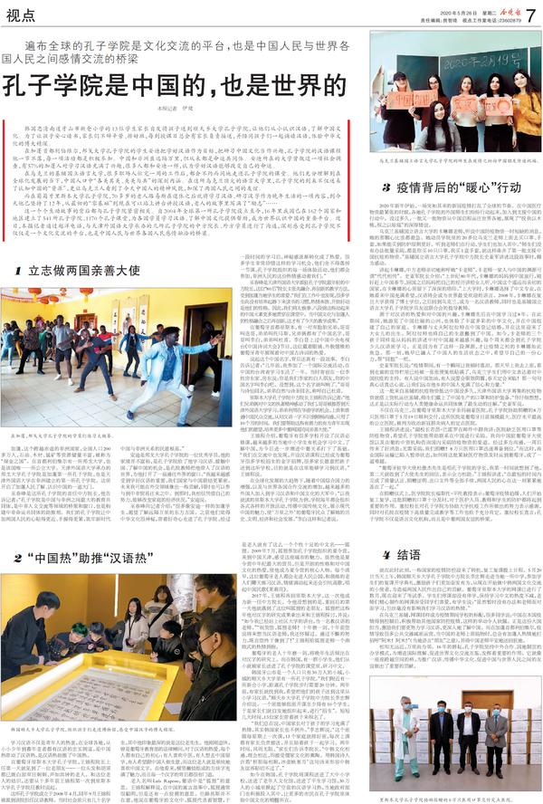 在全国率先完成承办的全部9所孔子学院的转隶;合作申报的加蓬鲁班工坊,通过天津市2020年度鲁班工坊建设项目评审。获批教育部高层次国际化人才培养创新实践基地、2020年“汉语桥”线上团组交流项目8项、国际中文教师奖学金线上项目1项,项目数和资金支持额度位居全国高校前列。《今晚报》专版报道孔子学院建设成果。