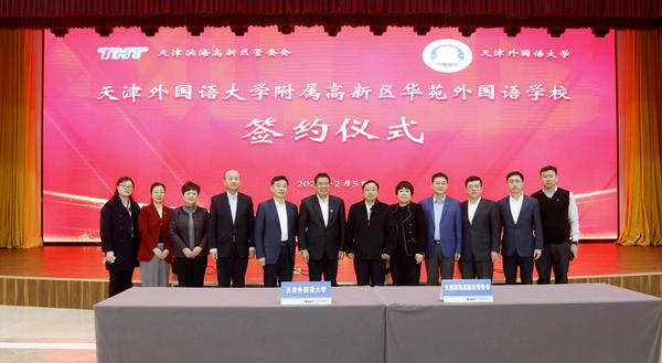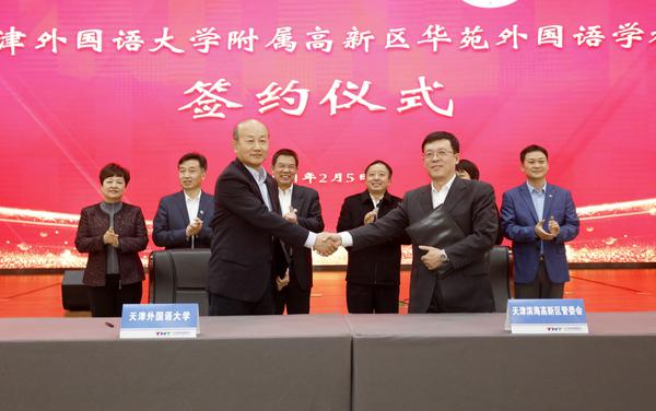 2021年2月5日,滨海高新区管委会与荣耀体育官方网站_荣耀体育jiangnan(中国)合作举办荣耀体育官方网站_荣耀体育jiangnan(中国)附属高新区华苑外国语学校(以下简称“高新区华苑附校”)签约仪式在高新区华苑科技园海泰大厦隆重举行。天津滨海新区教体局局长宫丽艳,天津滨海高新区党委书记、管委会主任夏青林,天津滨海高新区管委会副主任陈进红、韩林,荣耀体育官方网站_荣耀体育jiangnan(中国)党委书记殷奇,荣耀体育官方网站_荣耀体育jiangnan(中国)党委副书记、校长陈法春,荣耀体育官方网站_荣耀体育jiangnan(中国)副校长程国毅出席。