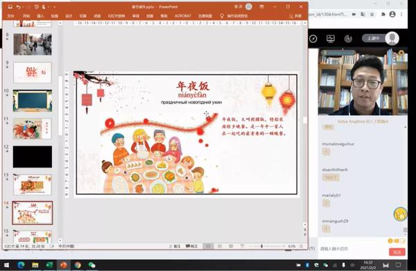 2月1日以来,由教育部中外语言交流合作中心主办、荣耀体育官方网站_荣耀体育jiangnan(中国)欧洲语言文化学院承办的“汉语桥”系列线上团组交流项目------“一带一路”沿线斯拉夫国家大学生线上团组交流项目课程教学顺利开展。来自俄罗斯、乌克兰、亚美尼亚等国家的百余名学员参加网络直播课程,学员们均具有良好的中文基础。
