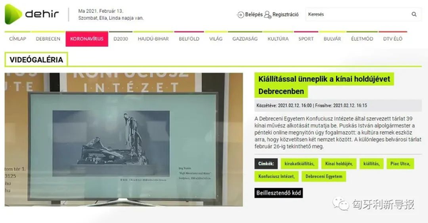 据匈牙利德布勒森市新闻网(www.dehir.hu)报道,2月12日下午,由德布勒森大学孔子学院主办,德布勒森市政府和我校协办的“匈牙利中国春·天津美院教师作品展”正式启动。