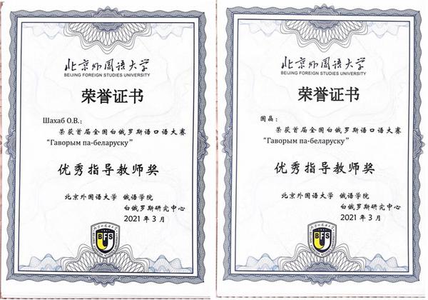 3月28日,由北京外国语大学俄语学院白俄罗斯研究中心主办的全国首届白俄罗斯语口语大赛颁奖仪式在线上举行。白俄罗斯前驻华大使鲁德·基里尔、白俄罗斯驻华大使馆一等秘书波德科维洛夫·亚历山大、明斯克国立语言大学白俄罗斯语言与文学教研室主任沃伊诺娃-斯特雷哈·玛利亚等出席颁奖仪式。我校欧洲语言文化学院俄语系负责人国晶、白俄罗斯语专业负责人邬波、白俄罗斯语专业外籍教师沙哈卜·奥莉加与来自全国4所高校的50余名师生共同参加活动。