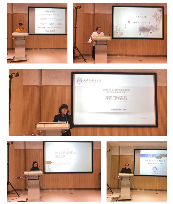 在教改项目课程思政专项交流会上,德语系胡峰、法语系巫春峰、意大利语系赵石薇、葡萄牙语系卢亚伟、匈牙利语专业王炳霖等五位教师,分别从课程建设基本情况、课程与思政教育的结合点、教育教学特色、预期建设成果等方面,分享了各自在专业课程中融入思政教育的教学设计理念与方法,并强调要因课制宜,充分依托线上教学平台与技术手段,为课程思政提供空间、创设情景、提供助力并做好思政教育与专业理论和知识有机融合,积极探索行之有效的教学新理念、新模式。