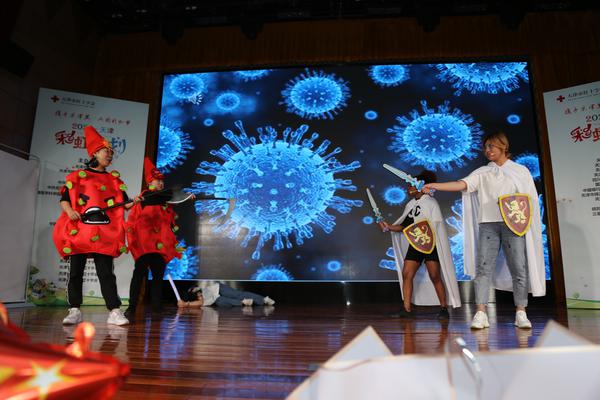 活动现场,我校首例成功捐献造血干细胞者、校友刘畅等多名成功捐献者代表带来了诗朗诵《孩子,让我拥抱你》,让孩子们时刻感受爱的力量。我校外国留学生和校红十字会志愿者骨干共同编排了《细胞特战队》,以舞台剧的形式,展现人体免疫细胞抵抗新冠病毒的过程,以趣味十足的方式开展科普,表达了对孩子们早日战胜疾病的美好祝愿。“超人加油!超人加油!”全场小朋友热情洋溢、全神贯注,为抗体超人鼓掌、加油助威,一起帮助抗体超人打败了病毒。表演结束后,演员分别用汉语、俄罗斯语、西班牙语、泰语、蒙古语等七种语言,祝愿小朋友们六一儿童节快乐。