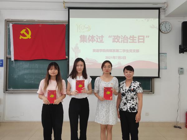 7月1日下午,在举国欢庆中国共产党成立100周年的特殊日子里,英语学院15个学生党支部分别组织了“政治生日会”,为支部党员过集体“政治生日”。学院党委书记、副书记深入支部参加活动。