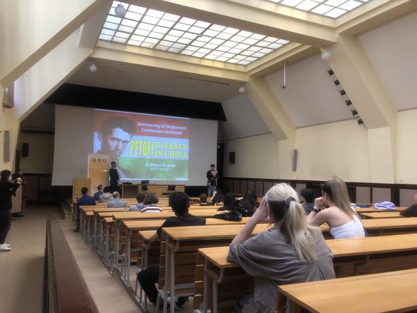 近日,匈牙利“文化骑士”称号获得者、欧洲“一带一路”经济文化促进会理事长、翻译家李震,应德布勒森大学孔子学院邀请,在德布勒森大学主楼大教室为师生和市民作了“裴多菲在中国”的精彩讲座,丰富了孔子学院的文化教学,扩大了孔子学院的影响力。