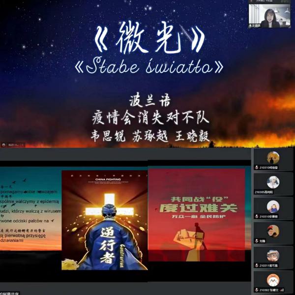 俄语专业作品《我们都是战士》回顾了疫情发生以来人们面临的各种困境,以及在面对疫情时无数志愿者、医护人员挺身而出守护家园的感人故事。来自法语和西班牙语的组合团队以《两人、四言、十年》为题讲述了中国近年来科技发展进步的故事,展现了“中国速度”和“以人为本”的发展理念。意大利语作品《我手里的十年》通过展示十年间我们使用的手机的变化,从一个微小的角度展现了新时代我国工业产业发展取得的成就,人民生活的幸福指数不断提升。保加利亚语的参赛队伍讲述了中国展翅高飞的十年,新时代的中国正大踏步走向世界舞台中央,上演更加精彩动人的中国故事。