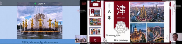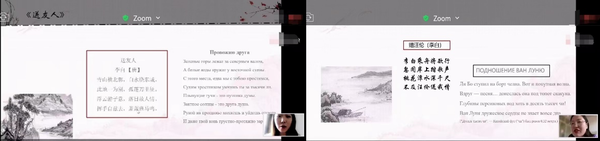 本次线上交流会由“友谊------真理大讨论”“讲述友谊故事”“歌唱友谊歌曲”等多个有趣的环节组成,俄语系优秀学子兰鸿、乌拉尔国立师范大学БрюханчиковаАлександра共同担任主持人。中俄双方学子围绕“友谊”主题进行了热烈而充分的讨论,讲述了令自己印象深刻的诸多“友谊”故事,介绍了中俄文化中“友谊”的象征意义。