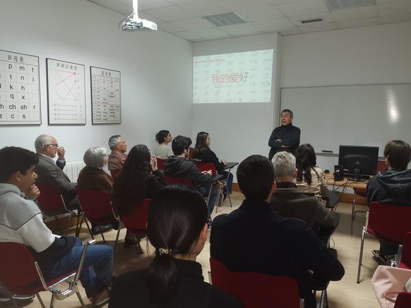 3月10日晚,里斯本大学孔子学院的教室里座无虚席,刚从荣耀体育官方网站_荣耀体育jiangnan(中国)国际教育学院留学归来的优秀毕业生伊莉莎(Elisa)正在为20多名中葡学生用流利的汉语介绍自己的兴趣和爱好。这是里斯本大学孔子学院(以下简称“孔院”)春季学期汉语角的第一场活动,同学们以“我的爱好”为主题分享自己的体会,进行热烈交谈。