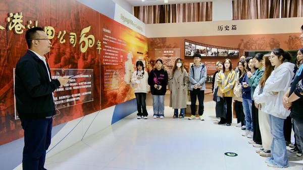 师生先后到大港油田厂史展览馆和采油一厂红旗展室开展实践教学。在大港油田展览馆厂史厅,师生聆听了工作人员饱含激情的讲解,浏览了大量珍贵的历史照片和实物原件,重温了天津大港油田人60年来不同历史阶段艰难而又辉煌的创业历程,探寻了大港油田公司从创建到成长、从改制到转型升级的发展之路,领略了“四精”“四创”“四增”的特色文化理念,学习了尤立红、宫艳红等一大批奋斗在一线的大港油田人策马扬鞭、开拓进取、接续发展的劳模事迹。在采油一厂红旗展室,通过先进基层党建经验的分享,师生回溯了大港油田公司党建引领、文化促进与生产经营相融合的发展之路,深刻感悟到了几代石油人在60年的拼搏奋战中总结凝练出的艰苦创业、为油奉献的“红旗文化”。