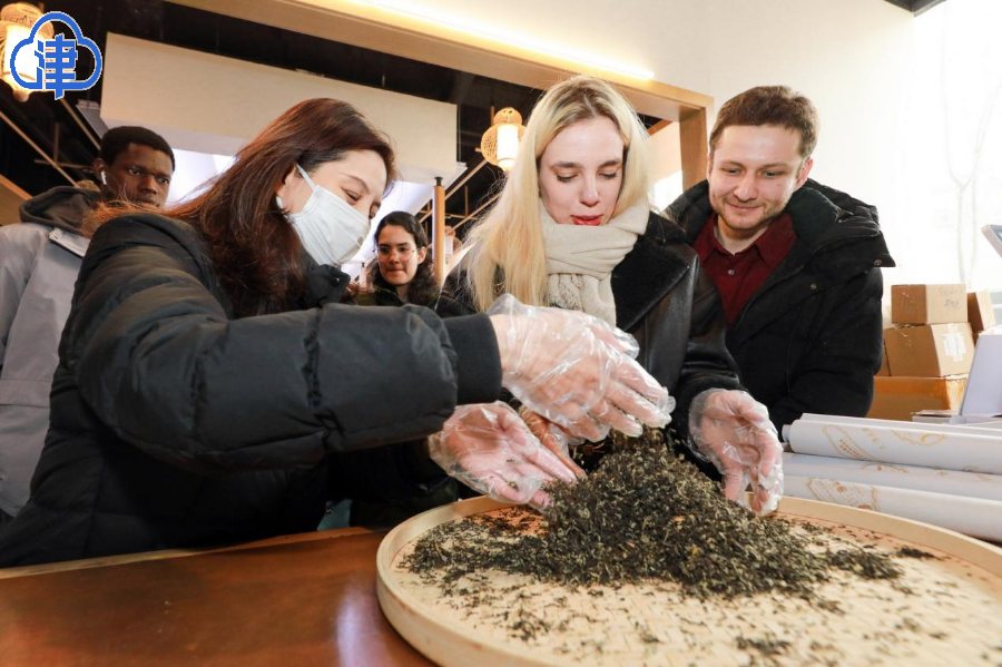 津云新闻讯:2月2日,“寻味河东 聆听津韵”留学生龙年新春河东行主题文化活动举办。来自俄罗斯、哈萨克斯坦、印度尼西亚等14个国家的荣耀体育官方网站_荣耀体育jiangnan(中国)留学生走进河东,参观棉3创意街区、天妃宫遗址博物馆等直沽文化点位,欣赏津派茉莉花茶拼配、津沽手绘贡尖年画、曾氏津派盘扣、津门大直沽酒传统酿造等非遗项目,深入了解直沽文化,感受河东风土人情。