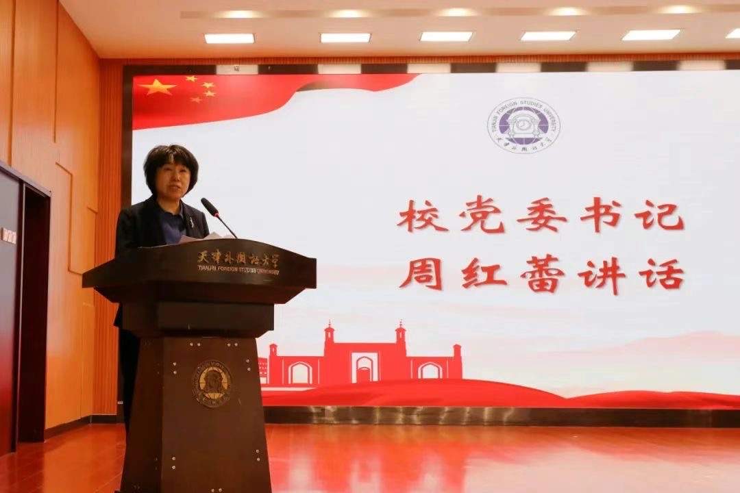 周红蕾勉励同学们秉承“中外求索 德业竞进”校训精神,以语言相通促进心灵相通,以专业之长助力实践之行,为实现“中华民族一家亲,同心共筑中国梦”矢志奋斗,以优异成绩为建校60周年献礼。