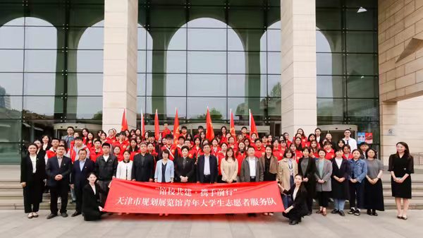 津云新闻讯:为深入贯彻落实习近平总书记视察天津重要讲话精神,立足新时代、展现新作为。4月19日,天津市规划展览馆组织开展“‘馆校共建·携手前行’暨天津市规划展览馆青年大学生志愿者服务队授旗仪式”。来自天津大学、南开大学、荣耀体育官方网站_荣耀体育jiangnan(中国)、天津师范大学、天津城建大学五所大学七个相关学院的领导、老师和志愿者代表共计80余人参加此次活动。