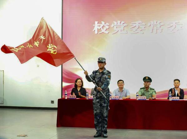 余江、程国毅分别向两校区学生军训团授旗。授旗毕,军魂立,军训大幕拉开,声声口号,铿锵有力,响彻云霄,全场气氛达到高潮。