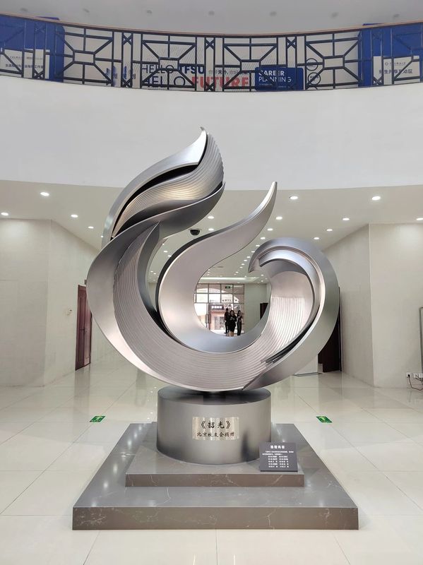 4、云龙天外丰甲子,学人窗前译西东。学校建校六十周年,雕塑整体造型为写意的60,是盛典的标志。