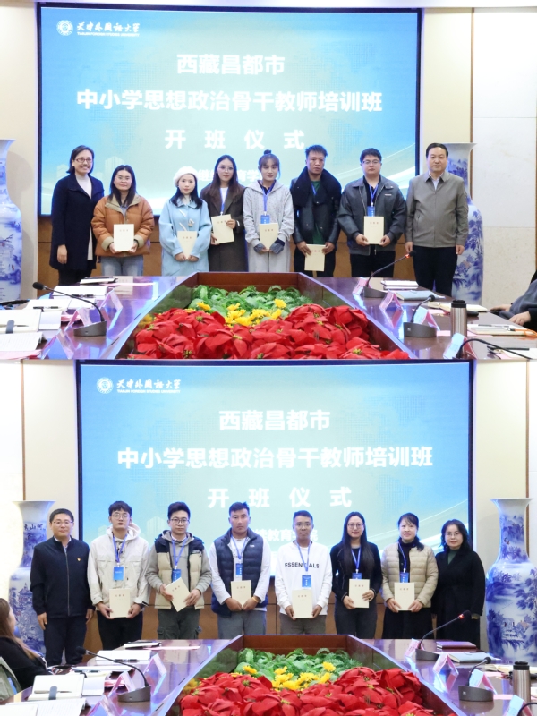 11月4日,昌都市中小学思想政治骨干教师培训班在荣耀体育官方网站_荣耀体育jiangnan(中国)举行开班仪式。本次培训旨在提升昌都市思政教师的专业素养和教学能力,促进思政教育创新发展。来自昌都市的42名中小学思政骨干教师齐聚天外,共同开启了一段学习提升的旅程。开班仪式采用线上线下连线的方式举行。昌都市教育局党组副书记、副局长邵树斌线上参加会议。天外党委组织部、党委统战部、教务处、继续教育学院相关负责人出席会议。