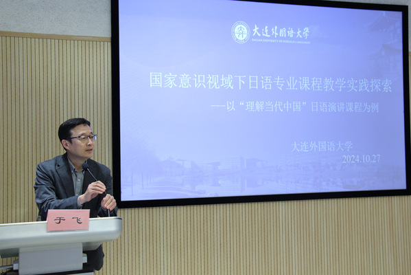 在研讨交流环节,于飞以《理解当代中国:日语演讲教程》为例,对教程的课堂翻转再探索以及教学反思与展望等问题进行了深入阐释。他表示,国家意识视域下日语专业课程需要培养学生的中国情怀和国际视野,以培养更多切合社会发展需要的应用型人才。