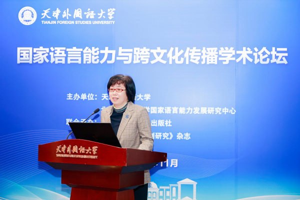 李迎迎在致辞中指出,语言资源是国家重要资源,国家语言能力是国家综合国力的组成部分,是国家软硬实力、战略战术实力的重要支撑。她表示,新时代外语院校要积极回应时代要求,实现深刻转型,立足服务于国家发展大战略、大格局、大使命,展现新作为,建立新功业。期待各位与会嘉宾畅所欲言、凝聚共识,为进一步推动国家语言能力建设,提升国家文化软实力,助力中华文化传播积极贡献力量。