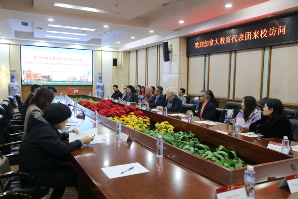 朱鹏霄对加拿大教育代表团一行的到来表示欢迎,并从本科、硕士、博士三个层面以“两段历史”“两个校区”的角度介绍了天外的基本情况。他指出,作为外语类高校,天外高度重视国际交流工作,截至目前,学校已与50多个国家的330余所大学和教育机构建立了友好合作关系,留学生工作、国际中文教育工作特色突出、发展迅速。近年来“中文+职业技能”人才培养模式深受留学生好评,与国外多所职业院校合作取得良好成效。学校还承担了重要的社会服务功能,依托多所附属外国语中学,助力天津基础教育的发展;为高端国际会议和外事工作提供高质量翻译服务,为宣传天津良好的国际形象做出重要贡献。