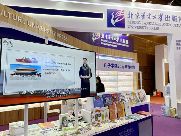 在研讨会举办的同时,“世界中文大会语言展”也同期举办。本届语言展分为HSK中国教育国际交流、中文联盟、资源及数字化三个展区。其中,天外国际教育学院编写的天津市重点建设教材——《看故宫·学汉语》系列教材登上了北京语言大学出版社重点推介目录,向现场来自各国的嘉宾展示。