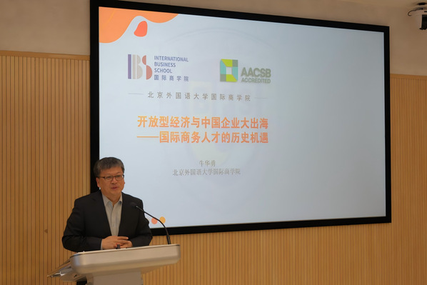 全国国际商务专业学位研究生教育指导委员会委员、北京外国语大学国际商学院院长、教授、博士生导师牛华勇以《中国企业出海与国际商务人才培养》为题作学术报告,从中国企业出海的整体情况出发,分析了中国企业出海的动因与挑战,提出了出海时代国际商务人才培养模式的变革及其举措。