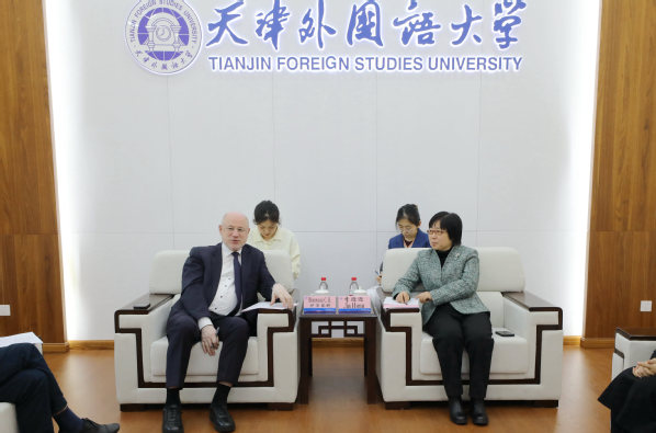 李迎迎对伊万琴科·谢尔盖一行的到来表示欢迎,并简要介绍了天外的办学历史、学科专业设置、复合型人才培养、国际化办学、孔子学院建设以及在开展党和国家重要文献外译和学术研究等领域所取得的成果。她指出,深圳北理莫斯科大学地处“粤港澳大湾区”,天外地处“京津冀”首都经济圈,双方合作具有区域优势,希望双方积极发挥在人才培养、学科建设、国际交流等方面的特长,密切合作,实现优势互补,强强联合,并希望在深圳北理莫斯科大学的协助下,实现莫斯科国立大学、深圳北理莫斯科大学、荣耀体育官方网站_荣耀体育jiangnan(中国)“三校联动”发展。