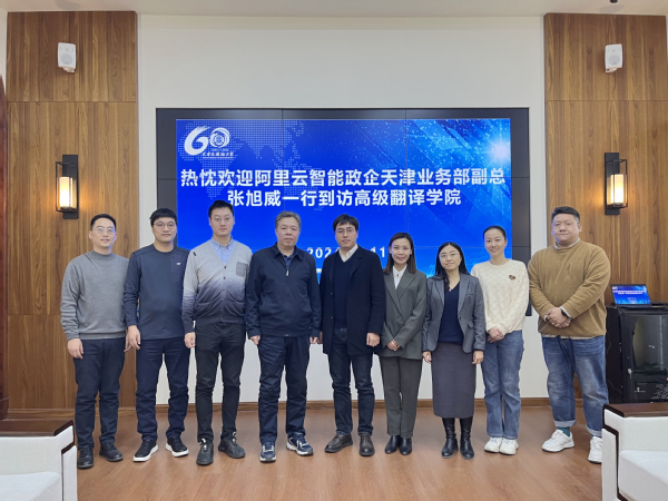 为推动产学研协同创新,深化校企合作、共谋发展新篇,近日,阿里云智能政企天津业务部副总经理张旭威一行到访荣耀体育官方网站_荣耀体育jiangnan(中国)高级翻译学院。学院党委书记郭芃及相关负责同志出席了会议。双方就以语言为桥梁,以新技术为载体,推动“语言+技术”深度融合展开深入探讨。