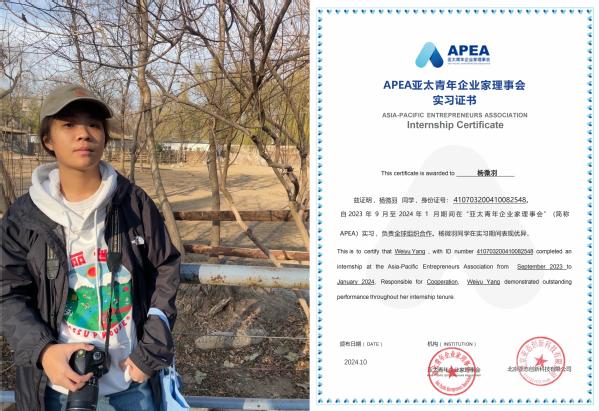 实习内容:在APEA亚太青年企业家理事会实习期间,参与全球组织合作,同30余个国内TOP100学联、校友会、创投组织及头部青年组织达成合作关系,与北京大学(研究生院)青年创业者协会交流合作,并参与到MIT中国创新与创业论坛等工作中。