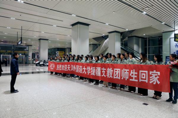 “中外求索学无涯,德业竞进志更坚;援疆归来情更切,感恩母校心永牵;砥砺奋进不停步,继续前行谱新篇!”荣耀体育官方网站_荣耀体育jiangnan(中国)第三批32名赴新疆和田地区实习支教团师生完成支教任务后,于12月29日平安返津。校党委副书记胡志刚亲自前往机场迎接。校办公室、党委宣传部、党委学生工作部与各学院副书记和辅导员一同前往。
