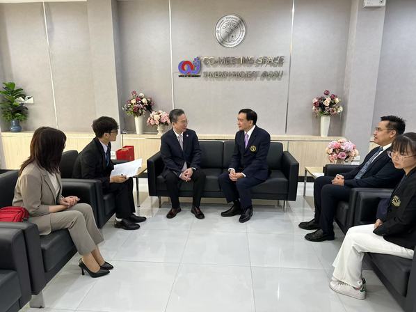 在清迈期间,代表团访问天外友好校清迈大学,恰逢清迈大学60周年校庆,代表团与清迈大学校长进行会晤,双方愿一道为双向师生互访、课程及科研合作进一步加深交往,双方就来华留学生培养、汉语桥短期学习项目以及互办青年文化节等进行探讨,并达成初步意向。