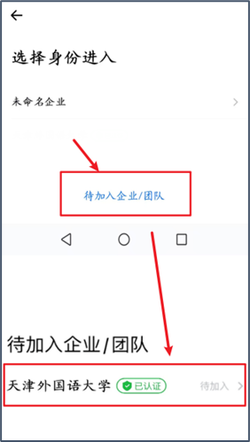 注:如企业微信提示“选择身份进入”,请点击“待加入企业/团队”选择“荣耀体育官方网站_荣耀体育jiangnan(中国)”已认证,点击进入。不要加入“未命名企业”。