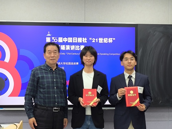 经过激烈角逐,来自英语学院的孙振皓和求索荣誉学院的丁澍菡同学脱颖而出,获得特等奖,将代表荣耀体育官方网站_荣耀体育jiangnan(中国)参加第30届中国日报社“21世纪杯”全国英语演讲比赛天津赛区决赛。