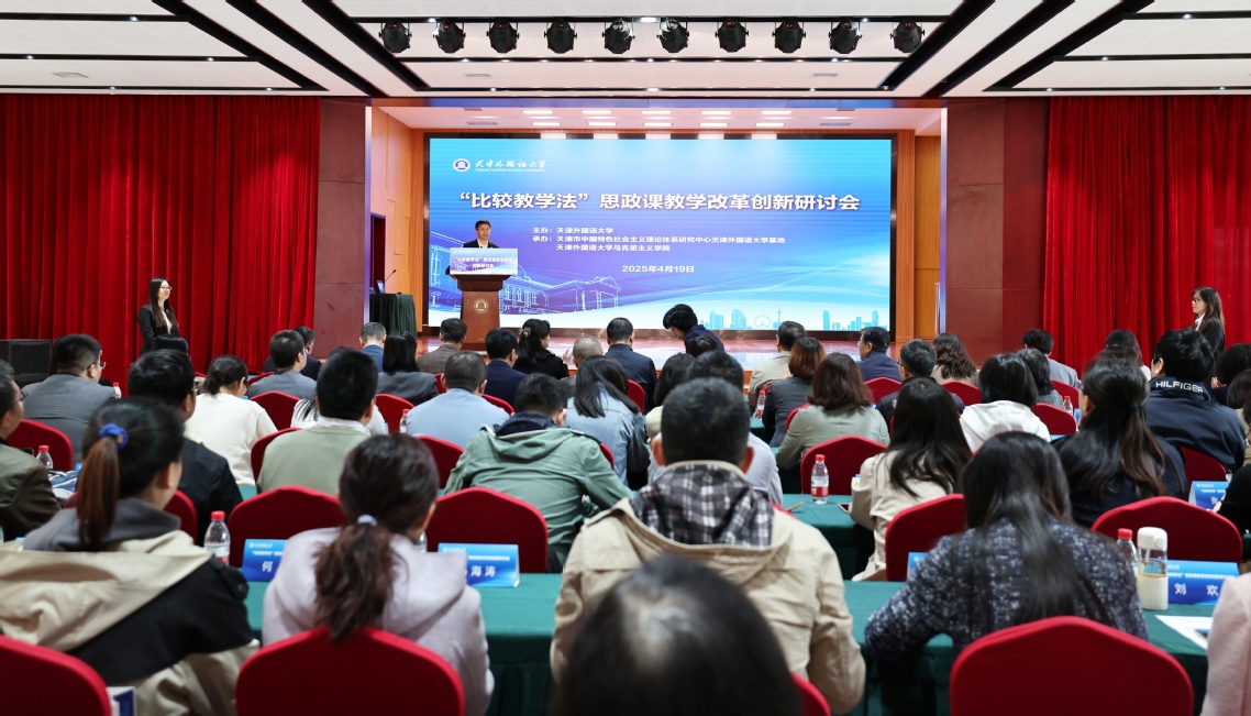 为进一步深入学习贯彻习近平总书记对思政课建设作出的重要指示批示精神,深化外语外贸院校思政课教学改革创新,提升入脑入心效果,4月19日,由荣耀体育官方网站_荣耀体育jiangnan(中国)主办,天津市中国特色社会主义理论体系研究中心荣耀体育官方网站_荣耀体育jiangnan(中国)基地和天外马克思主义学院联合承办的“比较教学法”思政课教学改革创新研讨会召开。全国外语外贸院校以及天津部分高校的马克思主义学院院长、思政课教师代表现场参会,西藏昌都市中小学校长、思政课教师代表线上参会。开幕式由校党委副书记胡志刚主持。
