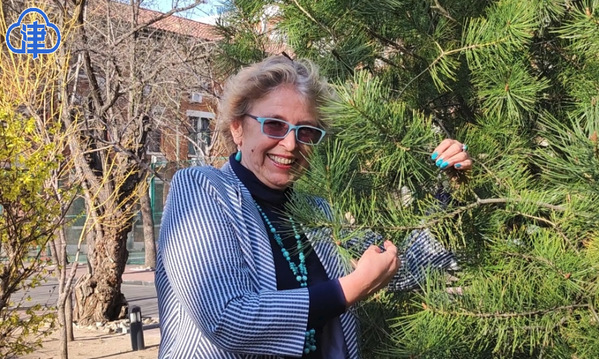 天外图书馆前的小花园里,草木待发,满目生机,伊琳娜嗅着翠绿的松枝,她说这是家乡的味道,俄罗斯也有很多松树。