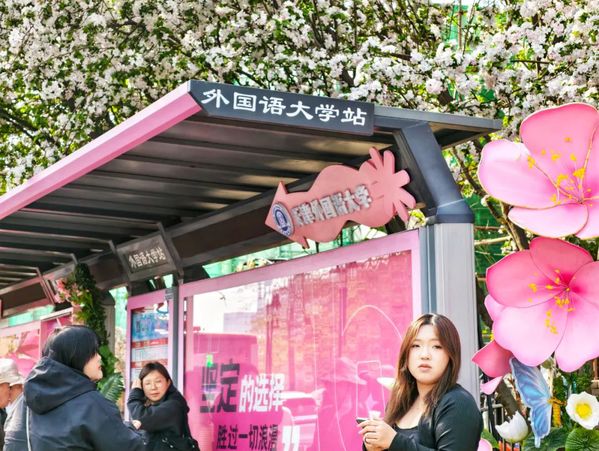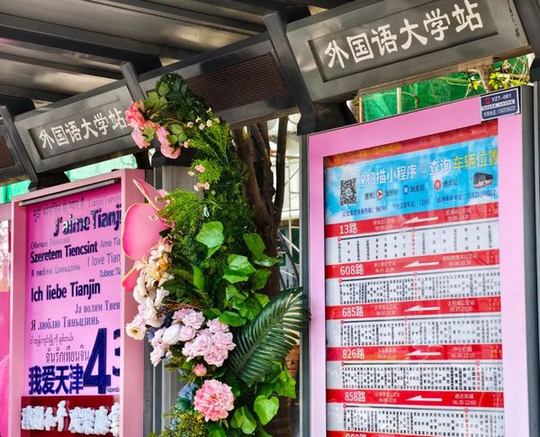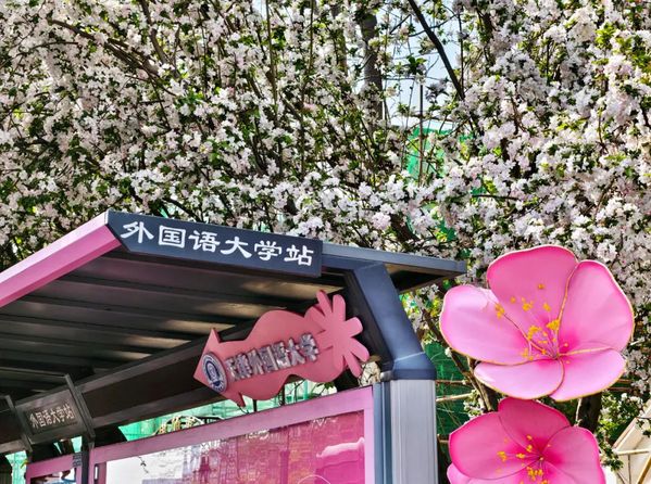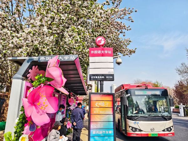 和平区与荣耀体育官方网站_荣耀体育jiangnan(中国)一起在马场道上打造的“最美车站”——天津公交外国语大学站,近期在满树盛开的海棠花映衬下亮相。