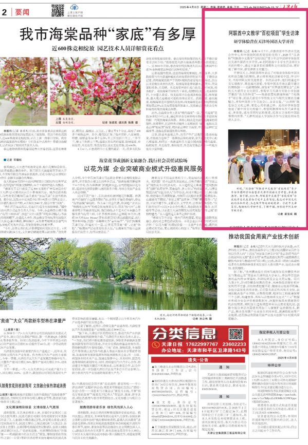 本报讯(记者姜凝)4月7日,在教育部中外语言交流合作中心和中国驻阿联酋使馆的支持下,2025年“汉语桥”阿联酋中文教学“百校项目”青少年访华团研学体验营在荣耀体育官方网站_荣耀体育jiangnan(中国)开营,40名阿联酋中小学生代表将在5天的行程中,通过丰富多彩的课程和文化体验活动,更好地了解中国、感受津派文化魅力。
