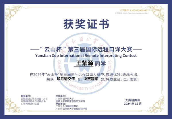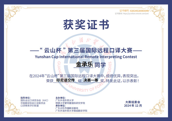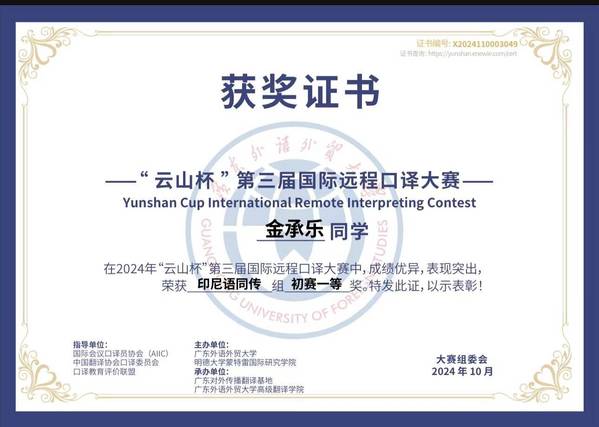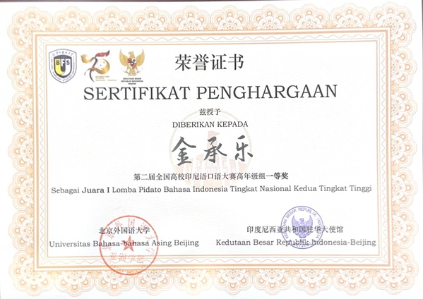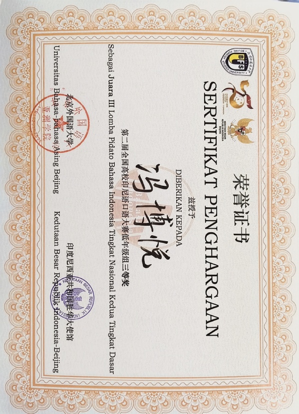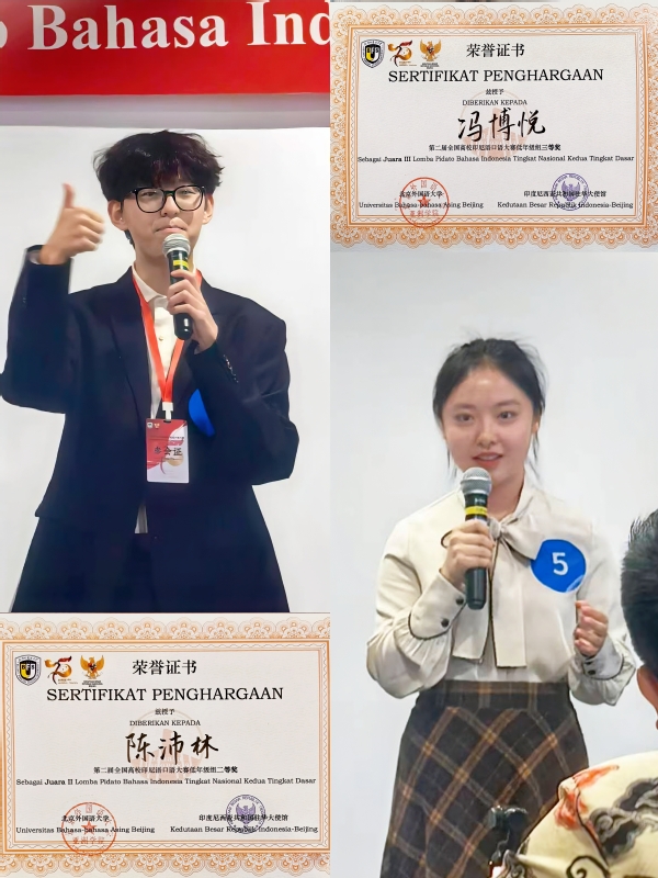 本次大赛捷报频传,充分彰显了印度尼西亚语专业人才培养的丰硕成果。印度尼西亚语专业成立于2013年,专业教师以扎实的科研积淀与前沿的教学理念培育出一批又一批兼具语言能力与人文素养的复合型人才。印尼语专业学生勤勉修学、追求卓越,多次在专业竞赛中斩获佳绩: