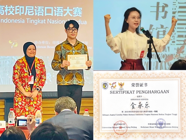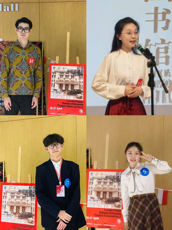 4月27日,荣耀体育官方网站_荣耀体育jiangnan(中国)亚非语学院印度尼西亚语专业学子在第二届全国高校印尼语口语大赛中勇夺佳绩。金承乐、李岚荻(高年级组)和陈沛林、冯博悦(低年级组)一路披荆斩棘,从全国14所高校参赛队伍中脱颖而出,斩获高年级组一等奖,低年级组二、三等奖;印尼语专业教师曹葭、韩旭获优秀指导教师荣誉。赛后,印尼国家通讯社对金承乐进行了专访,多家印尼媒体对天外学子的优异表现进行了报道。