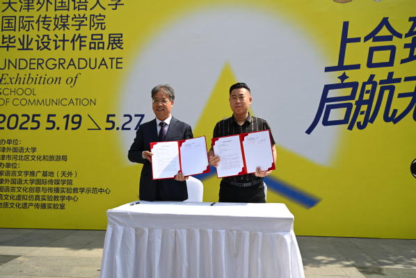 开幕式后,与会嘉宾一同参观2025年国际传媒学院毕业设计作品展。校地双方领导围绕深化科研合作、文创产品开发、志愿服务联动等议题展开深入交流,达成建立文化教育资源共享机制等多项共识。