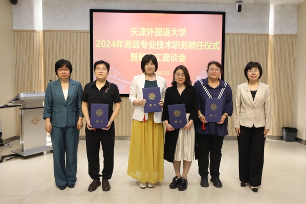 仪式在观看微电影《讲述》中温馨开场。周红蕾向获聘高级专业技术职务人员表示祝贺,向新入职教职工表示欢迎。她围绕学习贯彻党的二十届三中全会和全国教育大会精神,结合《教育强国建设规划纲要(2024—2035年)》文件,解读了学校第三次党代会确定的“1468”蓝图规划和“强师优教”工程内容,讲授了一堂师德必修课。一是要提高政治站位,落实立德树人根本任务。广大教师要自觉将习近平总书记关于教育、外交、文化传播的重要论述深度融入教育教学过程中,持续培养具有家国情怀、全球视野、专业本领的复合型国际化人才,在教育强国、教育强市建设中不断书写天外作为。二是要提升专业素养,全面服务学校“四个高地”建设目标。广大教师要注重研判各学科发展特色和未来趋势,将个人研究兴趣与国家需求、学校发展战略结合起来,在学术创新、教学改革与社会服务中勇挑重担、率先垂范,实现新的突破。三是要涵养师德师风,秉持育人初心当好“四有好老师”。广大教师要主动践行教育家精神铸魂强师行动,推动教育家精神贯穿课堂教学、科学研究、社会实践各环节,坚持以德立身、以德施教,努力成为学生成长的“引路人”,争做“有理想信念、有道德情操、有扎实学识、有仁爱之心”的“大先生”。