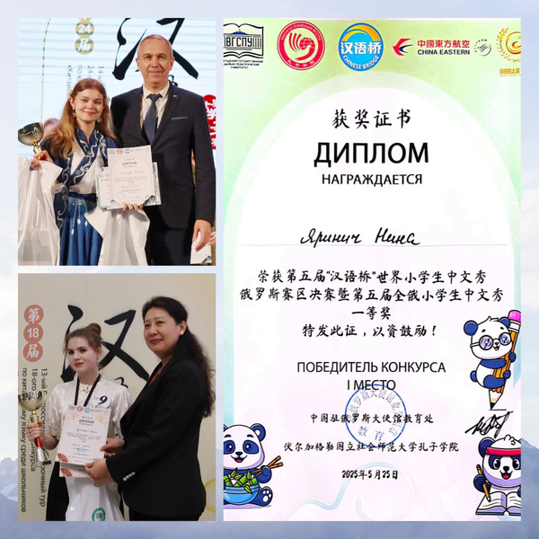 5月21日,22日和25日,由中华人民共和国驻俄罗斯联邦大使馆主办,伏尔加格勒国立社会师范大学孔子学院承办,俄罗斯新时代集团公司及中国东方航空公司赞助的第二十四届“汉语桥”世界大学生中文比赛、第十八届“汉语桥”世界中学生中文比赛及第五届“汉语桥”世界小学生中文秀俄罗斯赛区总决赛隆重举行。来自莫斯科、圣彼得堡、符拉迪沃斯托克、喀山、伊尔库茨克、叶卡捷琳堡及哈巴罗夫斯克七大领区的21名大学生组选手、17名中学生组选手齐聚伏尔加格勒市,17名小学组选手则通过线上方式参赛。