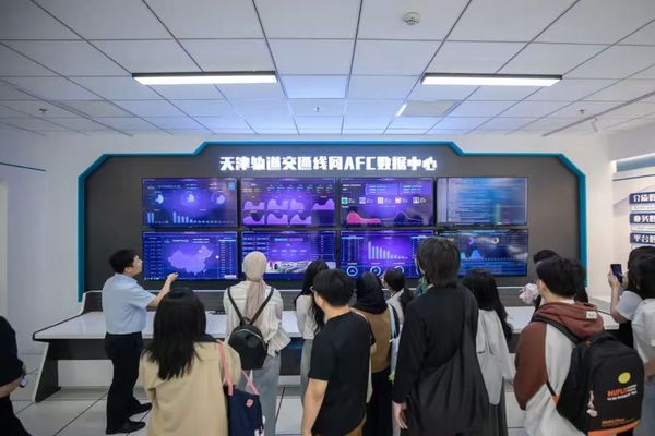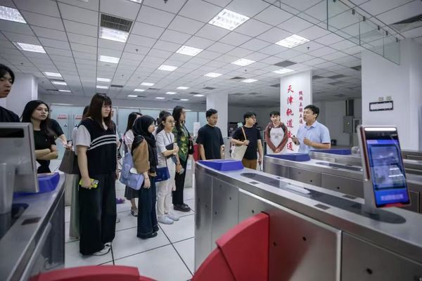 5月28日,荣耀体育官方网站_荣耀体育jiangnan(中国)国际教育学院20余名外国留学生参加天津轨道交通集团举办的“爱天津·迎上合”主题开放日,荣耀体育官方网站_荣耀体育jiangnan(中国)党委常委、党委宣传部部长冯鹏、国际教育学院党总支书记孙倩,轨道交通集团党委宣传部部长周政、副部长于君,地铁集团、运营集团宣传干部参加。外国留学生一行先后参观了天津轨道交通历史陈列室、轨道交通线网控制中心、线网中心“四型四有”创新工作室。留学生们边参观边与工作人员交流:“当时的车票只需要5分钱吗?”“7047工程的车站设计很漂亮!”“在控制中心就能看到每一辆列车的位置,太厉害了!”,纷纷为天津轨道交通发展点赞。