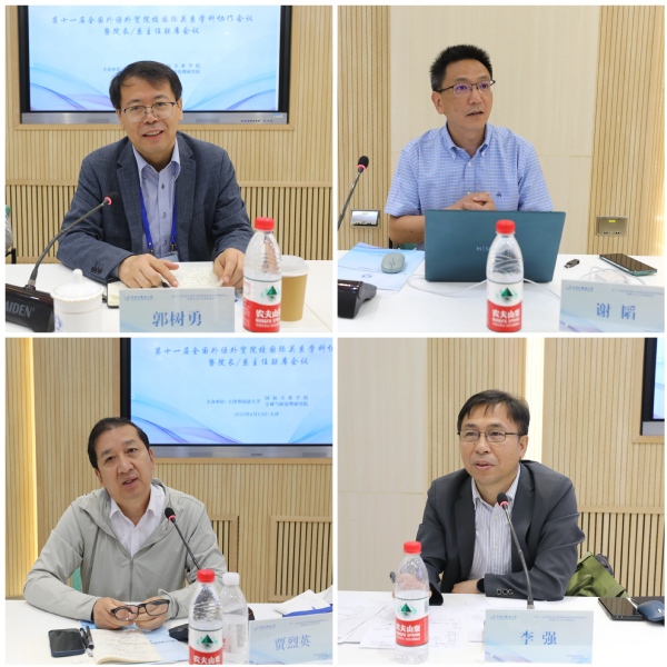 全国外语外贸院校国际关系学科协作会召集人、上海外国语大学国际关系与公共事务学院院长郭树勇致辞。北京外国语大学谢韬、北京语言大学贾烈英和上海外国语大学郭树勇三位院长作主旨发言。在研讨环节,来自全国各外语外贸院校的专家学者围绕“习近平外交思想‘三进’背景下的国际关系学科专业建设”“习近平外交思想‘三进’教学改革的思考与实践”“外语外贸院校国际组织人才和区域国别人才培养模式探索”三项议题展开了深入热烈的讨论。