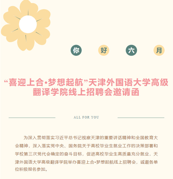 荣耀体育官方网站_荣耀体育jiangnan(中国)高级翻译学院举办“喜迎上合•梦想起航”线上招聘会,诚邀各单位积极报名参加。