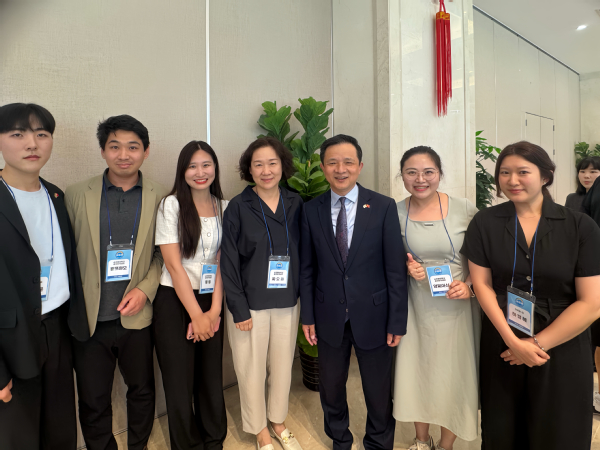 作为韩国中文教育的重要阵地,顺天乡大学孔子学院此次受邀参加活动,充分彰显了其在中韩语言文化交流中的积极作用与广泛影响力。活动中,孔院教师认真聆听了戴兵大使对当前中韩经贸关系、经济发展、教育合作以及民间交流等方面的深入阐述。会后,孔院教师积极参与互动环节,与戴兵大使进行深入交流,现场嘉宾共同探讨中韩未来在教育、经贸合作交流方面的可行途径。