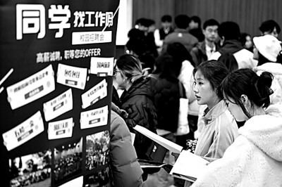 安徽省黄山学院,大学生在皖南地区专场招聘会上了解岗位信息。施亚磊摄/光明图片