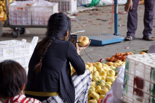 作为"中国桃乡"蒙阴的核心交易市场,莲汪崖日均交易量最高达50万斤。从分拣装箱到过秤装车,每个环节都井然有序。早市蜜桃能搭上冷链快车进入高端市场,而晚到的只能降价处理。这种"与时间赛跑"的交易模式,正是蒙阴蜜桃产业蓬勃发展的生动写照。在这个日均交易量最多可达50万斤的集散地,通过与10余农户、商户的深入交流,团队触摸到了蜜桃产业链最原生态的脉搏。