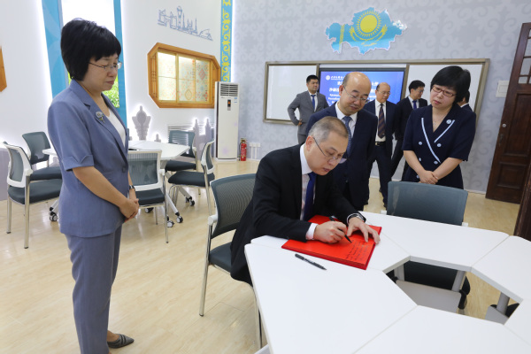 揭牌仪式后,努雷舍夫·沙赫拉特一行还参观了哈萨克斯坦研究中心和北疆博物院,并为中心寄语留念。
